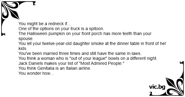 Might be a redneck if. For nearly a decade weve been helping students here in You Might Be A Redneck Ifthe USA to succeed in college. If youve ever been involved in a custody fight over a hunting dog you might be a redneck 24. You might be a redneck if.